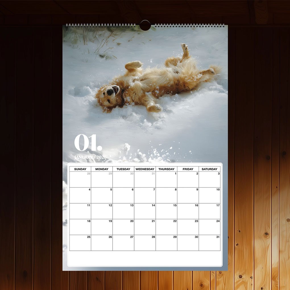 Our Year of Gold 2026 calendar is part of the Year of Gold Collection — a growing series of Golden Retriever calendars, greeting cards, and artwork designed for dog lovers and gift-givers alike. Every piece in the collection begins with a photograph captured by myself or my father, Allan Thomas, and then refined into artwork that celebrates the beauty and spirit of Golden Retrievers.